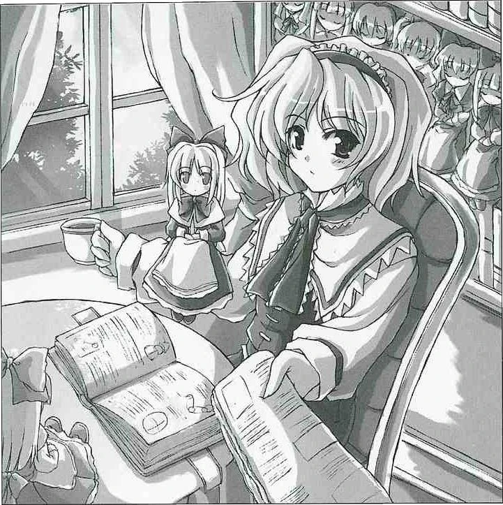 | 魔理沙と同様に蒐集家で、家には大量の人形やマジックアイテムが置かれている。 | Como ella es una ávida coleccionista como Marisa, un gran número de muñecas y otros objetos mágicos se encuentran dispersos en su casa. |