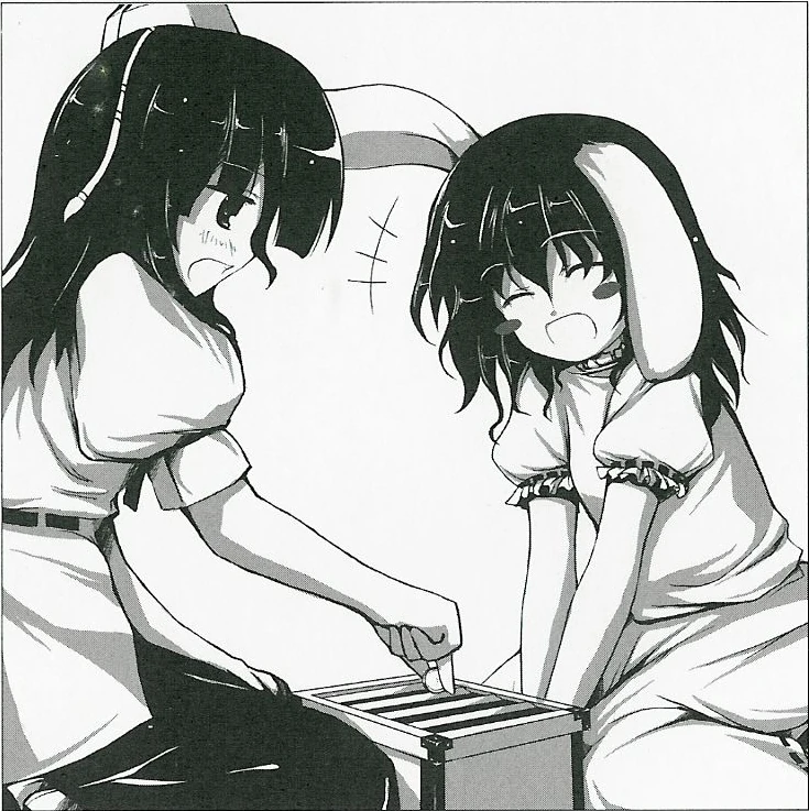 En medio de esto, la miko del santuario Reimu Hakurei, siendo la guardiana de las donaciones originales, dijo: | |