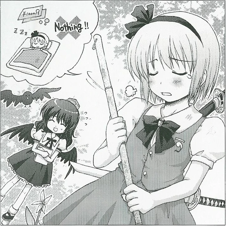 La persona que lidera el grupo fue Youmu Konpaku (mitad humana, mitad fantasma), que trabaja como jardinera en el Inframundo. | |