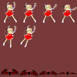Sprites de Flandre ripeados del EoSD donde se pueden observar los cristales de sus alas