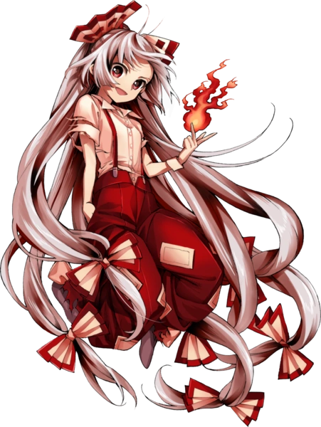 Fujiwara no Mokou (藤原妹紅) a pesar de ser solo una humana, Mokou se volvió inmortal tras beber el Elixir de Hourai hace ya aproximadamente 1300 años. A pesar de su inmortalidad, ella aún siente dolor como cualquier otro humano lo que hace que en una pelea pueda ser derrotada cuando ya no soporte más dolor. Se la considera muy poderosa a causa de la cantidad de años vividos que le permiten tener una vasta experiencia.