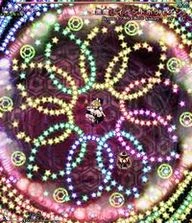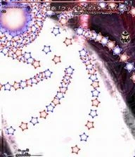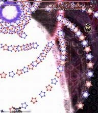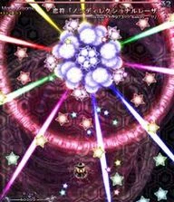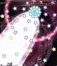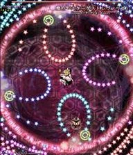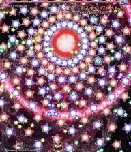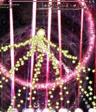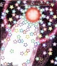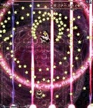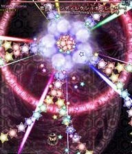 魔理沙らしい攻撃。万華鏡の様に姿を変える星屑の庭。凄く嫌。 A stardust reverie. This spell is very Marisa-ish. A garden of stars that changes its appearance like a kaleidoscope. It really sucks. |