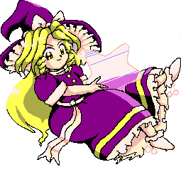 探しては、難癖を付けて遊ぶ女の子。しかし実は努力家でその力は隠れて修行した ものである。修行を全然しないくせに才能だけで強い霊夢に妬みを持つこともあり、 いつもいじめたりする。その実、魔理沙は霊夢がいないとつまんなくて死んでしま< う位、仲がよい。 | |