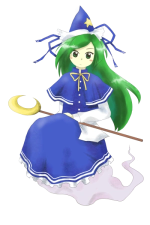 ★ 魅魔(みま)・・ 悪霊さん 非常にながい間、生きて(?) きた悪霊。ただし、物事をそんなに長い間覚えていられないので、 本人も比較的楽しく暮らしている様である。 すでに、博麗神社の神(祟り神)的存在となっているが、 その性格は、人間より人間的である。 | |