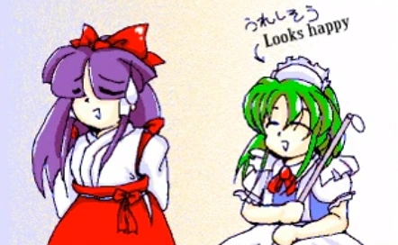 - Reimu, de igual forma que en la anterior curiosidad, siempre aparece en la pantalla de título de los juegos principales.