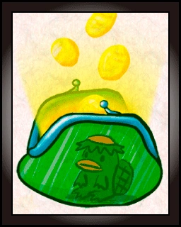 Tipo: Tarjeta activa La habilidad de Shinmyoumaru Sukuna. Convierte las balas enemigas en dinero. Un valiente inchling venció a un oni gigante. El "mazo milagroso" que el oni dejó caer a su paso era un objeto que podía conceder cualquier deseo imaginable. "¡Oh, si tan solo las balas fueran dinero ...!" |