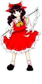 (Touhou 13) Comme au-dessus, mais ses cheveux sont devenus plus court (que jamais). Son gohei est aussi beaucoup plus long selon l'écran titre.
