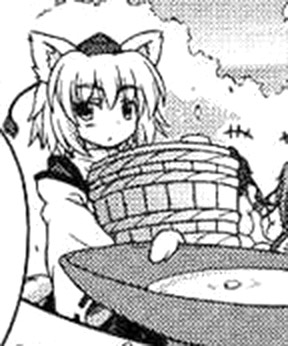 When the heroine finally reached Youkai Mountain during Mountain of Faith Momiji attempted to stop her at the waterfall. Although Momiji was unsuccessful, it seems she did fulfill her duty of reporting the intruder's presence back to the other Tengu with record speed as a reinforcement Tengu had arrived by the end of the same stage to investigate what was going on.