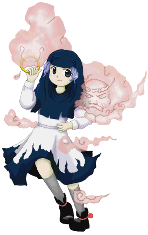 (Touhou 13.5) O mesmo descrito acima, mas agora ela um amuleto vermelho e uma kesa (especie de manto) amarela e preta, seu cabelo é mais claro com mechas azuis.