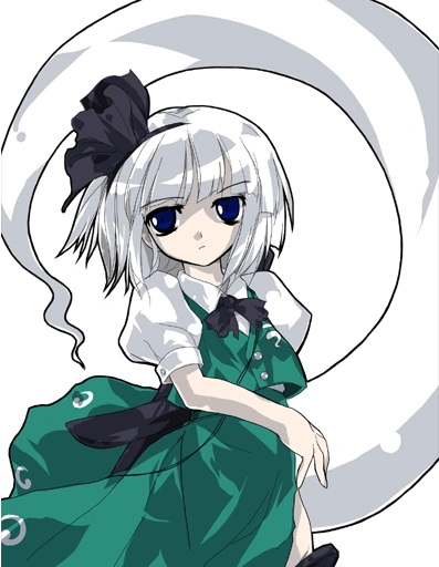 Местоположение: Хакугёкуро в Мире Мёртвых Садовник, который работает в Хакугёкуро и живёт там. Она является полу-человеком и полу-призраком, полумертвой и полуживой, полупризрачной и полуреальной, а в целом - неопытной. Также у неё есть два меча. Она пытается показать себя крепкой, способной на всё, но от этого, обычно, мало толку. По сравнению с таким разнообразными персонажами, которые населяют Генсокё, её слишком прямой характер очень легко понять. Она очень хороша в бою с теми, у кого столь же мало опыта. Она также весьма хороша в волшебстве для такого несформированого персонажа и имеет хорошее чувство баланса между ними. Используя Руканкен и Хакурокен, которые, говорят, были выкованы ёкаями, она может разрубить и врагов, и призраков, и проблемы людей, и даже пули. Нет ничего, что она не смогла бы разрубить. | |