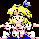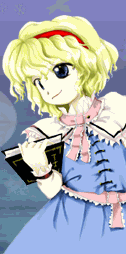 Alice Margatroid Species: Magician Location: Moderate sized house in the Forest of Magic (has no specific name) Ability: Use of Magic A genuine magician. While her appearance is almost identical to humans, she is not one. She is a kind of so called humanoid youkai. Her house is crammed with a lot of dolls. The sight is so spooky that it scares rare visitors away. The house of dolls is strangest even in the forest of the bizarre. It's no wonder that they tend to run away from there. Her personality is uncaring towards others, and tends to be obsessed with magic. She pretends that she has a strong attitude, but truthfully she is kind of a coward in her heart. She is quite average in melee fighting. Both her physical strength and magic powers are average. Instead of that she has very high dexterity, which enables her to control many dolls as if they're living beings. That dexterity shines even among all of Gensokyo. | |