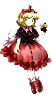 Маленький милый яд Медисин Меланхоли Разновидность: Кукла Способность: Манипуляция ядом Кукла, выброшенная на ландышевый луг за долгие годы ставшая ёкаем. Поскольку всего несколько лет прошло с тех пор, она - молодой ёкай. Ее способность-управление ядом. Определенные ингредиенты, взятые из растений, могут свести животное с ума. Она узнала это с помощью опытов, и создала метод манипуляции людьми по своему желанию. Кроме того, поскольку она не живое существо, яд безопасен для нее. Куклами обычно управляют люди. Из-за этого она желает эмансипации для кукол, но немногие куклы согласны с ней. Для начала другие куклы не перемещаются самостоятельно... Ландыши, которые, как ожидали, не будут цвести, начали цвести внезапно в этом году. В дополнение к этому даже осенние цветы, которые, как предполагалось, не должны цвести, цветут также. Она узнала, что есть много сил, которые она никогда не видела в Генсокё. | |
