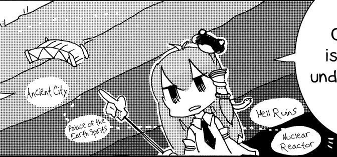 Нижний Мир состоит из нескольких уровней. Верхний уровень, который все же находится глубоко под землей, известен как Бывший Ад. Раньше это место было Адом, но Яма решила перенести его из-за перенаселения. Там находятся Дворец Духов Земли и Бывшая Столица, предположительно бывшая центром Ада. Нижний уровень представлен руинами Ада Пылающих Огней, обогревающего весь верхний уровень. Еще ниже расположена Термоядерная Домна, управляемая Уцухо Рейюджи, появляющаяся в 6 уровне Subterranean Animism. Она производит энергию для всего Нижнего Мира.