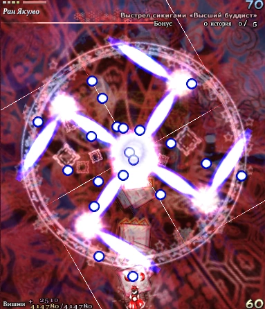 Двенадцать источников снарядов, на положение которых указывают белые ауры, начинают двигаться от Ран, выпуская снаряды дождём, пока не окажутся в специфических местах и начнут выпускать снаряды конкретным узором.
