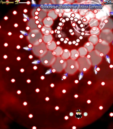 Ремилия выпускает шесть крупных снарядов, направленных на противника, которые оставляют за собой след из снарядов, собирающихся в сгустки в верхней части экрана и рассеивающихся в нижней, а затем меняющих направление, как в «Проклятье Влада Цепеша».