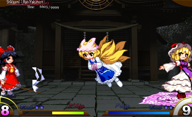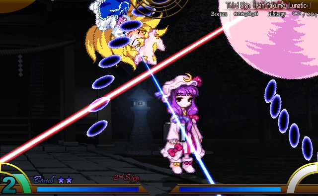 Очень похожа на «Ёкайский лазер кицуне-тануки» Ран. Крупные снаряды теперь летят не прямо в противника, а рядом с ней.