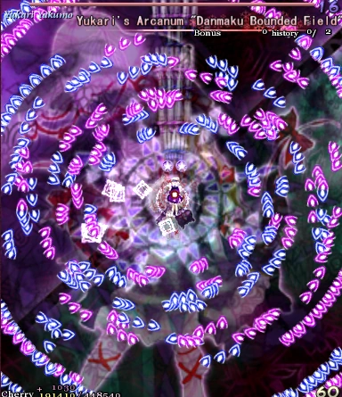 Юкари выпустит в сторону противника два крупных снаряда. Один взорвётся замедленной версией узора из спеллкарты Ран «Мысли лисы-отшельника», а другой взорвётся множеством бирюзовых снарядов, которые сначала летят в случайном направлении, а затем останавливаются на мгновение и летят в сторону противника.