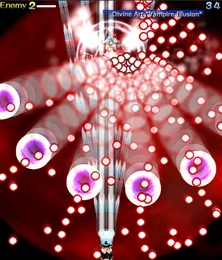 Ремилия формирует сложный узор из красных лазеров, из каждого угла которого летят крупные синие снаряды. Крайние просто стреляют в случайных направлениях, а те, что ближе к вампиру, выпускают пять узоров, формирующих звёзды.
