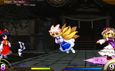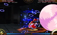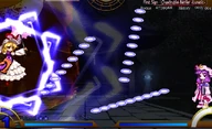 Юкари крутит свой зонтик, и либо выпускает потоки из пуль, либо летит вперёд, окружённая лазерными лезвиями, после чего лезвия ещё и летят в сторону противника через какое-то время после появления.