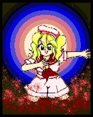 During Phantasmagoria of Dim.Dream Chiyuri wrote an invitation flier with promises of wishes being granted to lure people to the "ruins" (which later turned out to be a ship). After pitting the various heroines against each other so that only the strongest one would make it inside she drew a gun on the surviving heroine to force her to cooperate because it was more fun that way. This turned out to be completely different from how Yumemi had wanted the situation handled, and Chiyuri was forced to fight the heroine so that Yumemi could collect research data about magic. Chiyuri was defeated, and much sooner than Yumemi had expected.