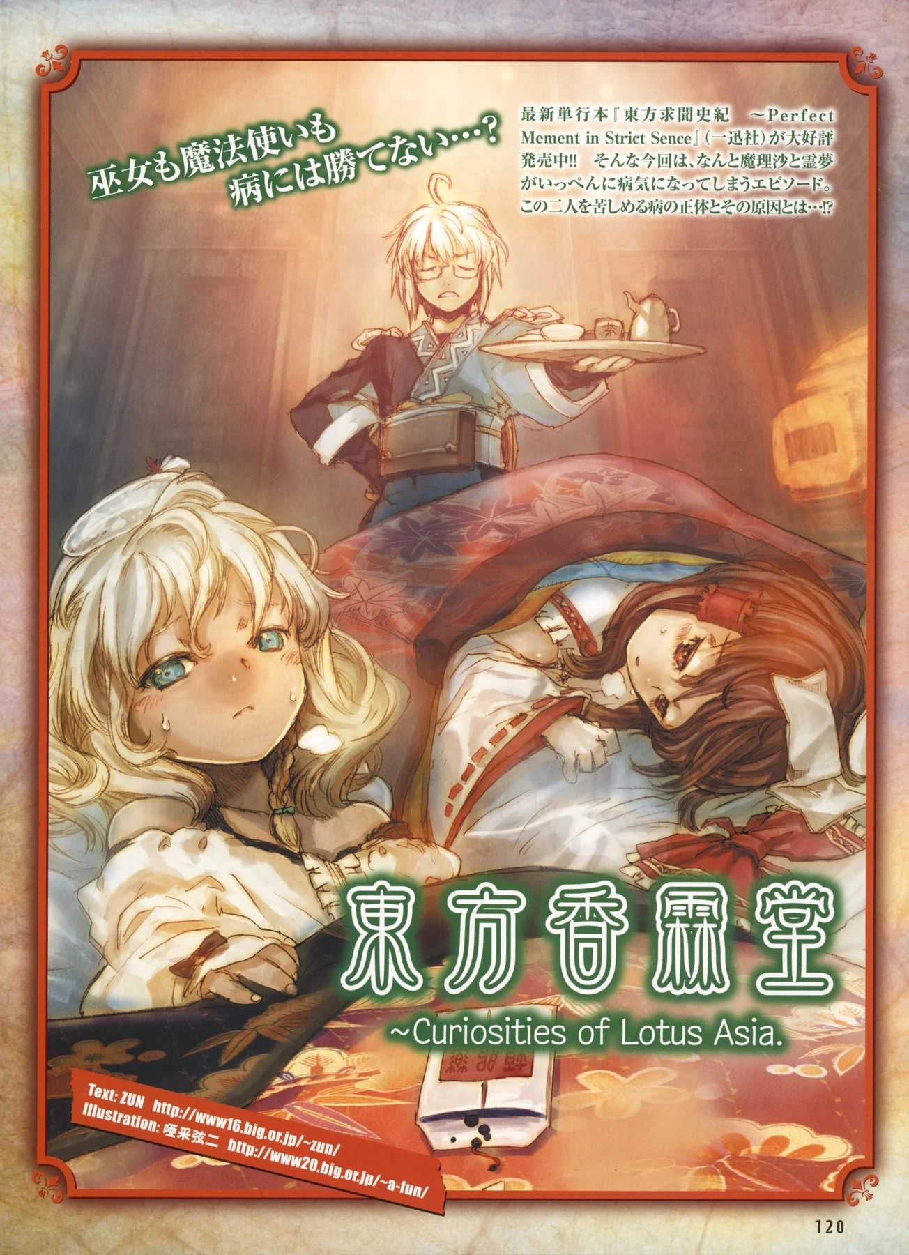 | 最新単行本『東方求聞史紀 ~Perfect Mement in Strict Sence』(一迅社)が大好評発売中!! そんな今回は、なんと魔理沙と霊夢がいっぺんに病気になってしまうエピソード。この二人を苦しめる病の正体とその原因とは…!? | |