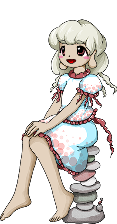 Eika Ebisu is the first stage midboss and boss of Touhou 17, Wily Beast and Weakest Creature. She resides Sai no Kawara, the riverbank of the Sanzu River.