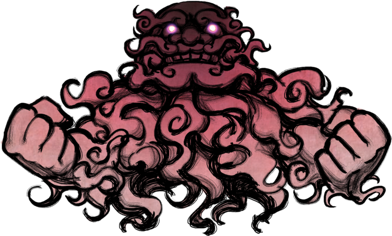 Unzan is Ichirin's nyuudou partner. He is literally a gigantic, angry pink cloud with fists and a face, but ZUN describes him as a "gentle old man at heart." The two work together during the boss battles.
