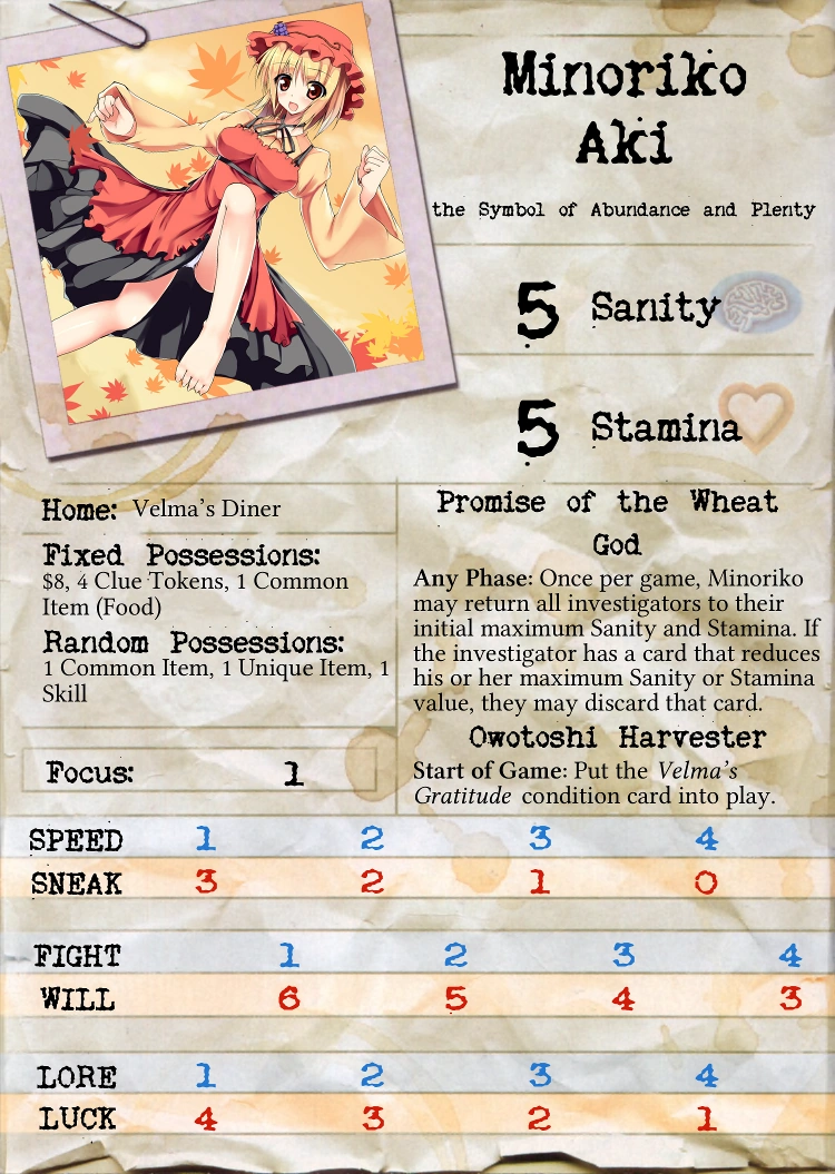 Minoriko's investigator card.
