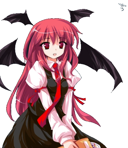 Very little is known about Koakuma, and unless she makes another appearance she may remain a mystery. What is known is that she's seen around the library of Scarlet Devil Mansion during the events of Embodiment of Scarlet Devil. Apparently she lives in the mansion. Her exact role is difficult to tell, but she is believed to be an assistant in Patchouli's library there, due to being the midboss of her stage.