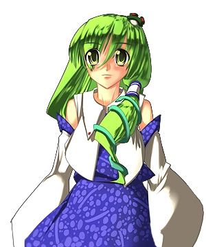 While at first glance you might think Sanae is similar to Minoriko, the two play very differently in practice. Where they are similar is that they are a bit frail side, they have average ailment resistances, and their stat growths are fairly similar (Sanae's are higher, but she levels notably slower), but it stops there. Defensively, Sanae's affinities are more well-rounded than Minoriko's. Sanae carries a higher magic and higher damage potential on her attack formulas, but lacks the defense piercing aspect. Her supportive spells especially shouldn't be mistaken for being the same, either: her SP costs and delays are much greater than Minoriko's, meaning that despite her better MAG stat, her healing does not match the output and speed of Minoriko's healing. However, her healing will clear all ailments and debuffs off of a character, something that Minoriko cannot do, and her buffing spell raises offensive stats and even speed as well, making it a great way to power up a single character. While it's hard not to compare them, neither is always greater than the other, and your party composition can and will affect which will prove more useful to you.