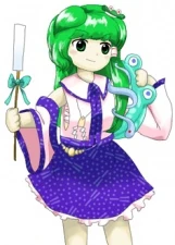 A Miko that lives in the Moriya Shrine on the Youkai Mountain. Not used to Youkai extermination. She was troubled by the continuing rain. She went to investigate the sea by the order of Kanako, even though she thought that investigating the sky would be a more appropriate method to stop the rain. Since Kanako said it, the cause is probably the sea. As memories of the sea floated into her eyes again, she proceeded to resolve the incident - something she isn't used to.
