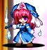 Meiling, aka China, is the first enemy you face in both stages that take place at Scarlet Devil Mansion (Remilia's and Sakuya's). Her method of attack is to run at you and perform a flying kick, then turn around and do the same from the other side. She runs for a slightly longer time before jumping when running left to right as opposed to right to left. Once you have her pattern down you can make her jump over you every time, but she hits very hard, depleting 1/4 of your health bar if she hits. In Remilia's stage you will have to face her again about halfway through, but she can be avoided by flying over her with the Super Broom. Like Sakuya, Meiling cannot stand up to her mistress' weapon, and a single shot of Red Magic takes her out. In stage 4 of Patchouli's castle, she is the final enemy between you and the teleporter room for the boss re-fights--but you'll be up against two of her at the same time, as she is accompanied by a semi-transparent 'shadow' that mimics her moves and hits just as hard as she does. The shadow is weak to the Red Magic as well.