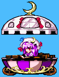 The first fight against Patchouli can actually be skipped with a glitch that requires Thousand Knives and at least enough weapon energy to perform it once. When you arrive in the room with the two magic-refilling crystals right before Patchouli, switch to Thousand Knives and use it just before you pass into the room where Patchouli is. Run quickly across the screen, jump over Patchouli and keep running to the right. You should make it to the next room just before the time stop wears off, enabling you to skip the fight and move on through the door to the next battle.