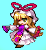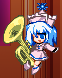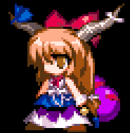 Appearing only in Reimu's stage, she blows gusts of wind periodically that push you backwards, usually into a swarming group of enemies, similar to the Fan Fiends from Air Man's stage in Mega Man 2. Both of her weakness weapons can hit her from far away.