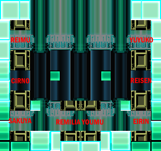 If you do defeat both shikigami before they finish their attacks, it will force Yukari to materialize again prematurely; otherwise she'll reappear after they fly at you. She keeps the same pattern no matter how much life she has, so once you've got it down, things should get easier. Red Magic and Force Crisis will both stick it to Yukari, but Red Magic is obviously easier to hit her with since you can shoot it straight up or at an upwards angle. Reincarnation Ghost is effective at taking out Ran and Chen, but be judicious about when you use it so you don't use up all its energy (if you have Butterfly Stream instead, that will also work). Yukari can't hurt you by contact when she's transparent, so don't hesitate to move around or through her if you need to dodge the shikigami's shots. Try not to get stuck at any of the edges of the screen, lest the ground you're standing on drop out from under you.