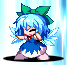 By remaining in the corner, you stay out of the way of most of her moves and the falling icicles, and if she jumps over to stand right next to you, the Ice Vulcans she fires will wind up behind you and harmlessly hit the wall. She also shoots tiny icicles in a triangular pattern, however, because of their small size, they are surprisingly easy to jump through. Cirno's other attack is the White Rose Cluster, where she charges a massive snowball and hurls it at you; this requires quick timing to jump over. The Psycho Missile or Mental Sacrifice makes the job of taking her down even easier.
