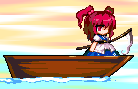 In Youmu's stage, Komachi is there to help you rather than hurt you. Near the start of the stage, you have to hop into her boat so she can (very slowly) ferry you across the river to reach the temple where Youmu is. However, on your way, you'll have to fight off massive hordes of ghosts floating over the river. While you can stand in Komachi's boat, power-ups fall through it, making collecting them difficult. Make sure not to let the ghosts knock you out of the boat to your death; Reincarnation Ghost can work as an effective defensive weapon although Mental Sacrifice, Red Magic, Psycho Missile, Butterfly Stream and Force Crisis may also work.