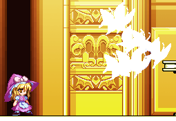 Marisa's flying broom. Not actually a weapon, can be used as a temporary platform or to cross long gaps that are impassable any other way, similar to Mega Man 2's Item-2. Disappears when it hits a wall or runs out of energy. Acquired after completing four stages with either character.