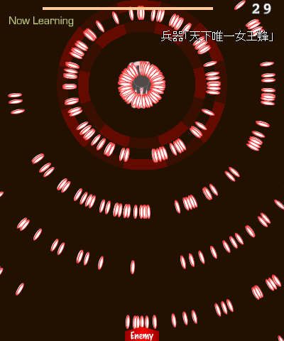 After spawning the streams of small danmaku, loop around the cluster to avoid all bullets. When the streams form, move through the center of it to graze both streams.