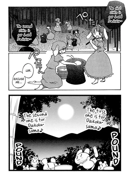 Eientei's Earth rabbits, in humanoid and animal forms.