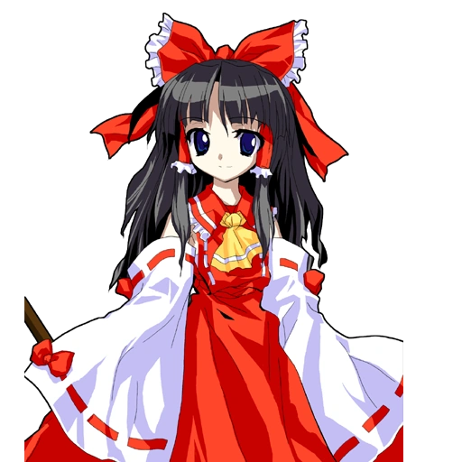 A shrine maiden of Hakurei Shrine, who has the natural-born spititual power and lacks training. She exterminates youkai by attacking with amulets, firing her spiritual power called Spiritual Attack and releasing the power of Yin-yang Orb.