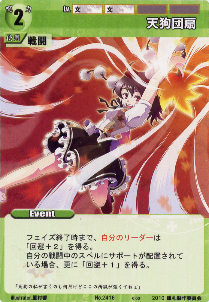 - Quote: She has a very cooperative personality and executes her duties faithfully. This is unusual for youkai, but not uncommon in tengu society.