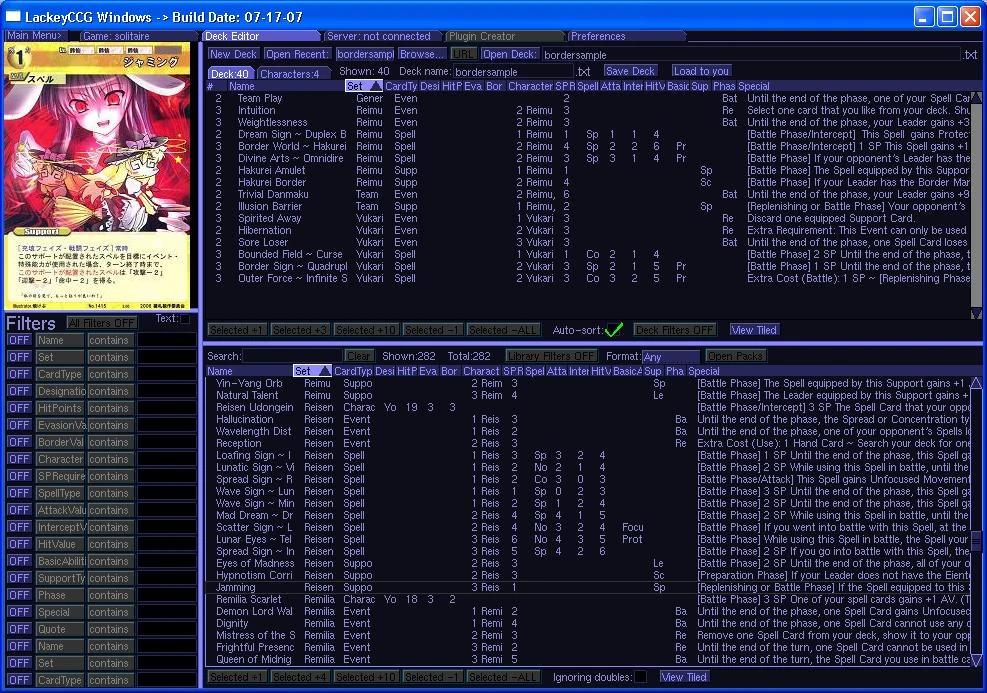 First create your deck using the deck editor. The plugin does not check for deck makeup, so be sure to set it up properly yourself. Remember that characters go in the characters section of the deck, and that there are 40 cards in a deck (not counting character cards), with up to 3 copies of any given card.
