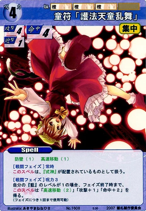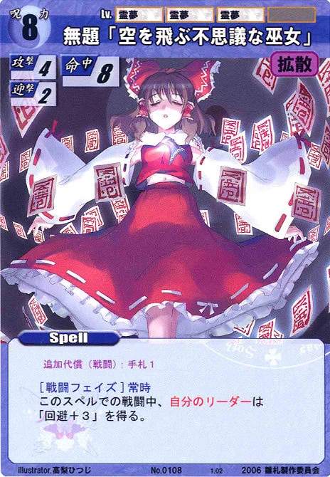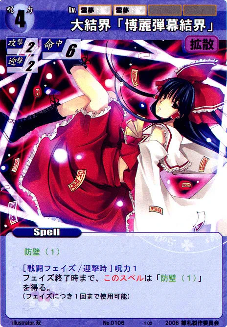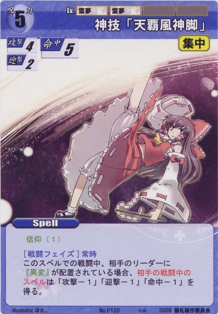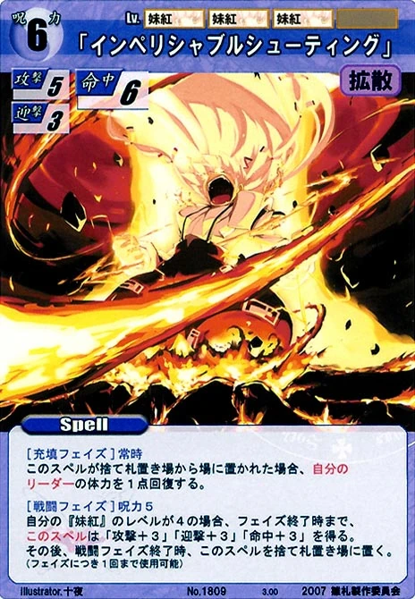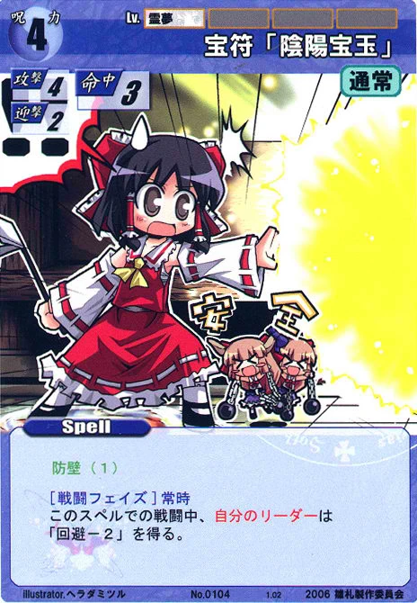 - Special: [Battle Phase] If your Reimu Level is 4, your Leader gains +1 EV when this Spell is used.