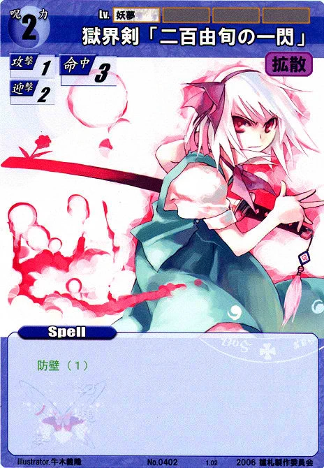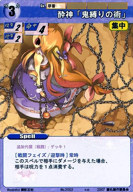 - Special: [Battle Phase] If your opponent's Leader has the "Youkai" Designation, the Spell Card that your opponent uses gets -1 HV when this Spell is used.