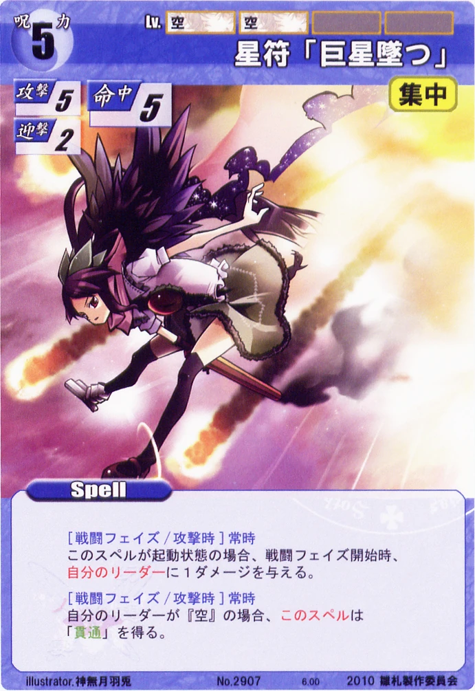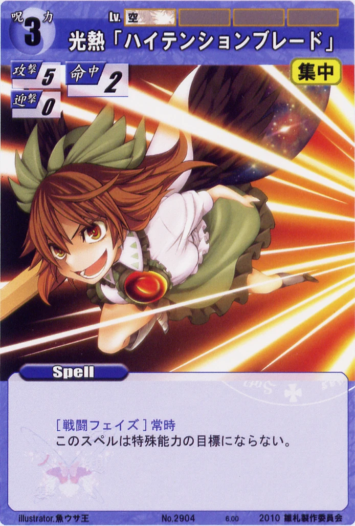 - Special 2: [Battle Phase/Attack] If your leader is Utsuho, this Spell gains Penetration.