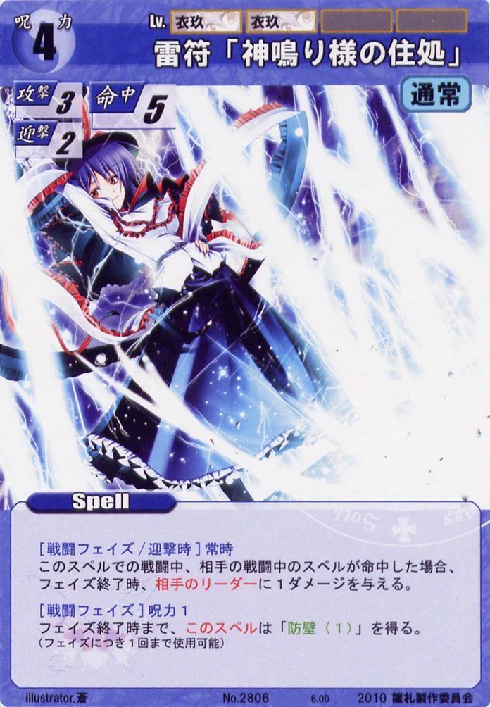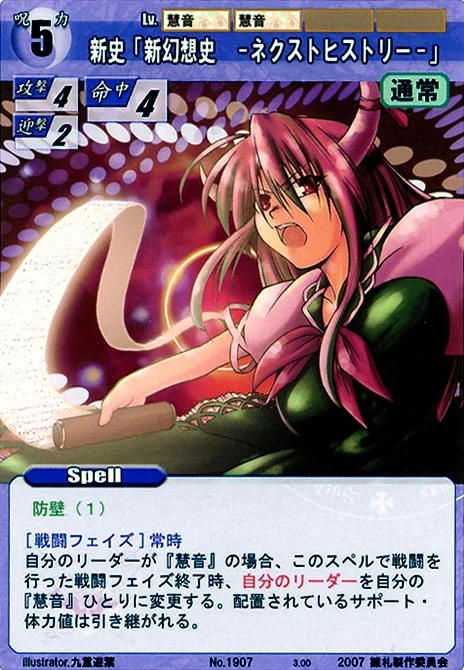 - Special 2: [Battle Phase] At the beginning of the phase, if your leader doesn't have the Chireiden attribute, This Spell is put in Reserve.