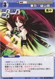 - Special: [Replenishing Phase] 1 SP Reserve this Active Spell Card, then activate 1 Reserved Spirit Sign "Fantasy Seal -Concentrate-" Spell Card.