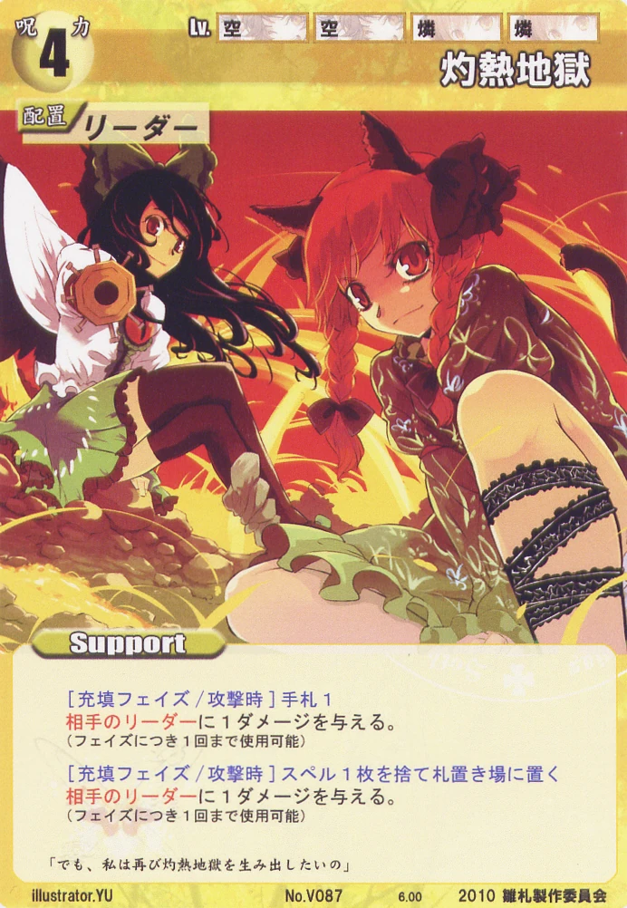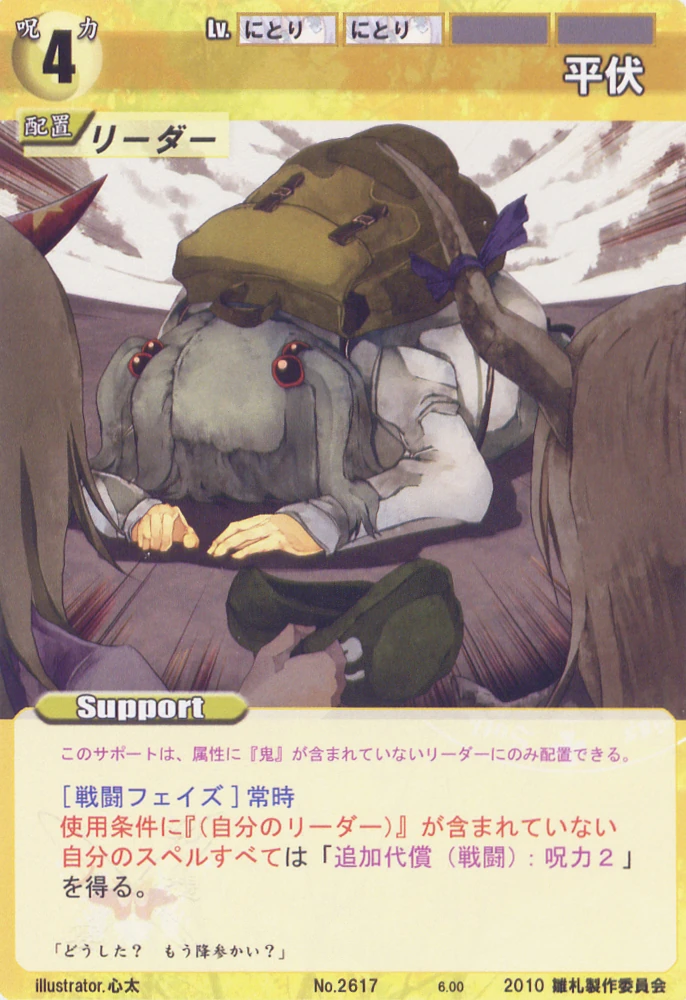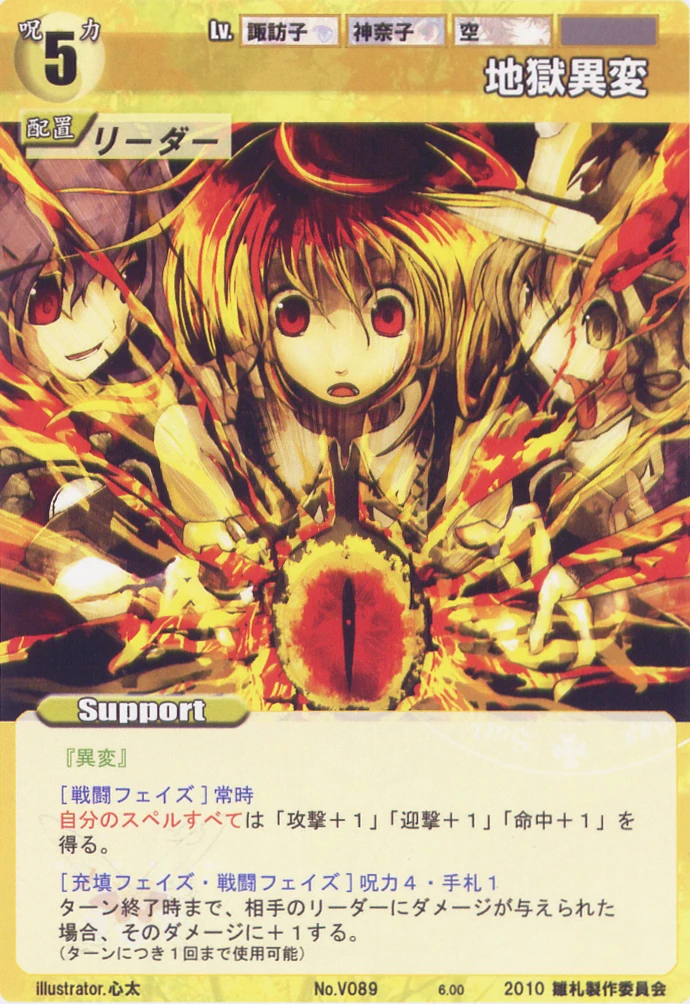 - Special: [Battle Phase] While your Leader has the "Youkai Mountain" designation, all of your Spells that require your Leader gain +2 HV.