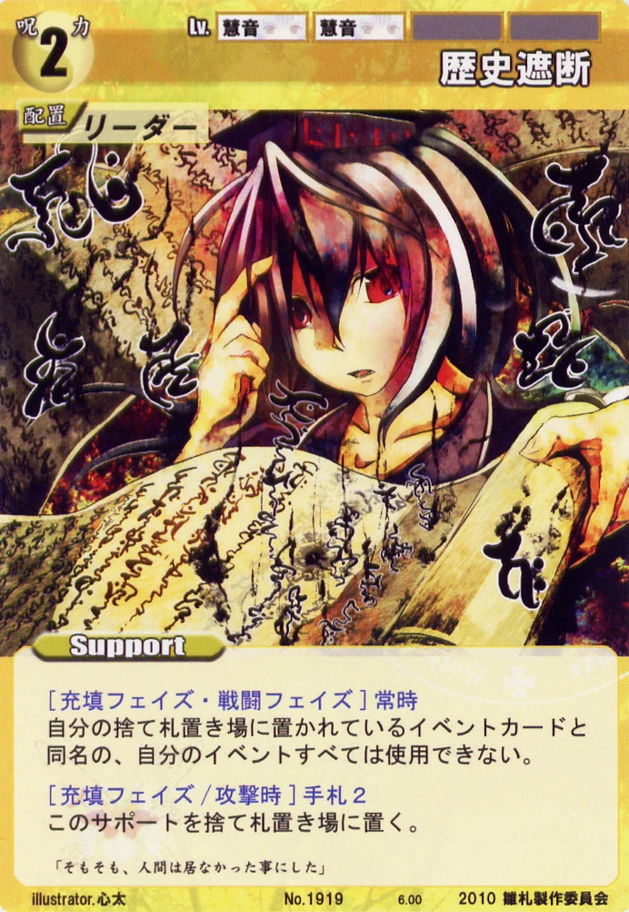 - Special: [Battle Phase] If your Leader has the "Eientei" Designation, your opponent's Event Cards and Specials cannot target any of your Spell Cards.